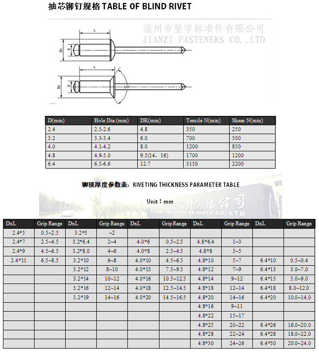 不锈钢抽芯铆钉STAINLESS STEEL BLIND RIVET